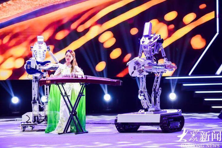 新民乐合奏《凤舞皆鲁·乐启新章》,磐石机器东说念主乐队进行扮演。吕光社 摄